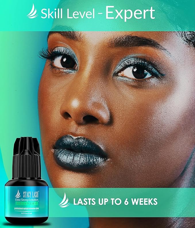 Stacy Lash Extra Strong Evolution Advanced Eyelash Extension Glue (0.17fl.oz/5ml)/ 1Sec Dry /6Weeks Retention/Black Adhesive/Professional Supplies