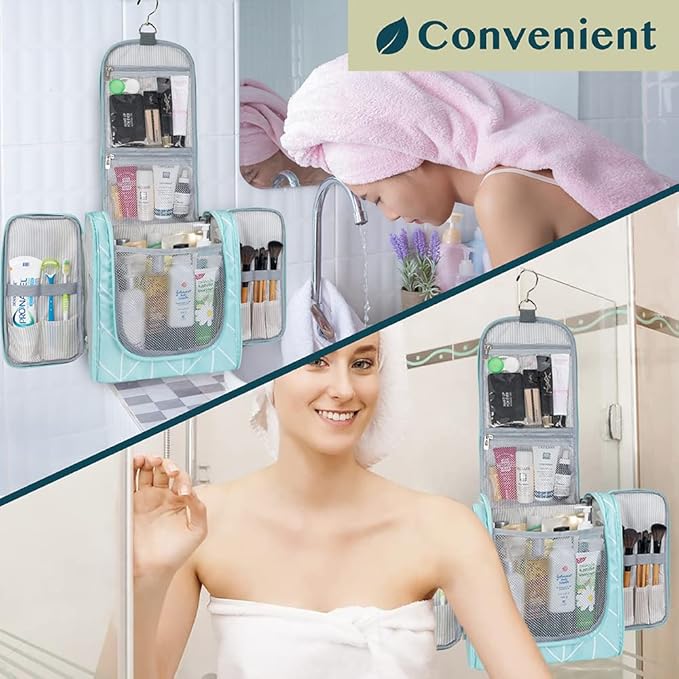 - COSMETICS TRAVEL BAG ORGANIZER: This toiletry bag for women has a hanging hook and multiple pockets that help you stay organizer during business trip, vacation travel. The hanging hook makes it easy to hang the toiletry bag to bars in the hotel shower bathroom. Unzip your toiletry bag to reveal compartments to organize your shampoo, skincare face hygiene products. This toiletry travel bag is an essential accessory for cruise in Europe, plane, Hawaii Trip, and honeymoon.