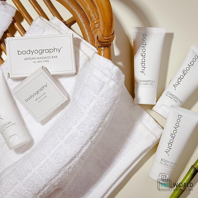 Bodyography Blanc-Bulk Artisan Massage Bar|200 Count, 1.8 oz Vanilla White Tea, Mini Travel Size Toiletries 100% Recyclable Individually Boxed Hotel Amenities, for All Skin Types