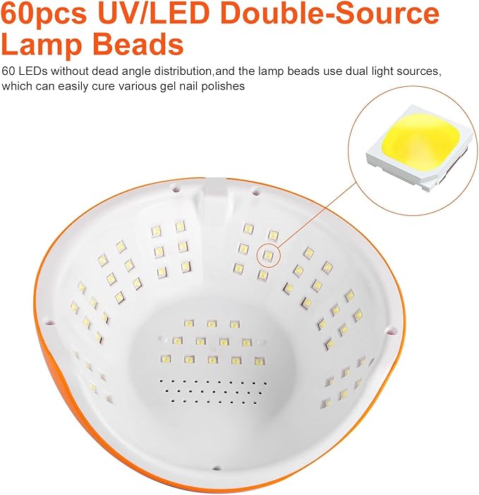 - Latest Nail Polish Dryer: Our professional nail polish curing machine featured the highest configuration UV light technology. 360 W high power will curing nail gel polish faster.60 pcs UV lights are scattered evenly on the top and sides of the lamp