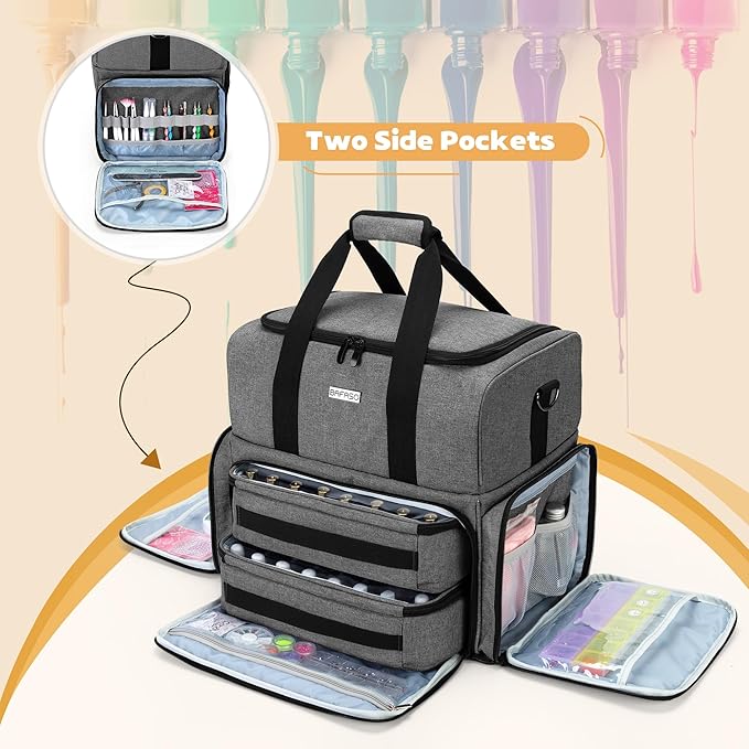 - OTHER TOOL STORAGE SECTIONS - 2 side pockets provide roomy space for dip powders and other manicure tools. There is also an adjustable shoulder strap and 2 sturdy handles for easy carrying.