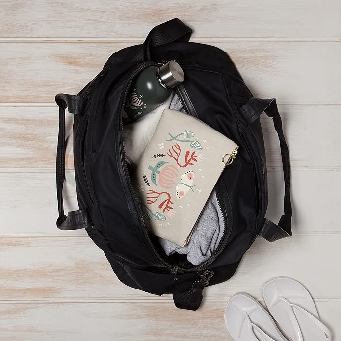 - Woven with natural cotton and lined with water-resistant vegan leather. Spot clean with a damp cloth