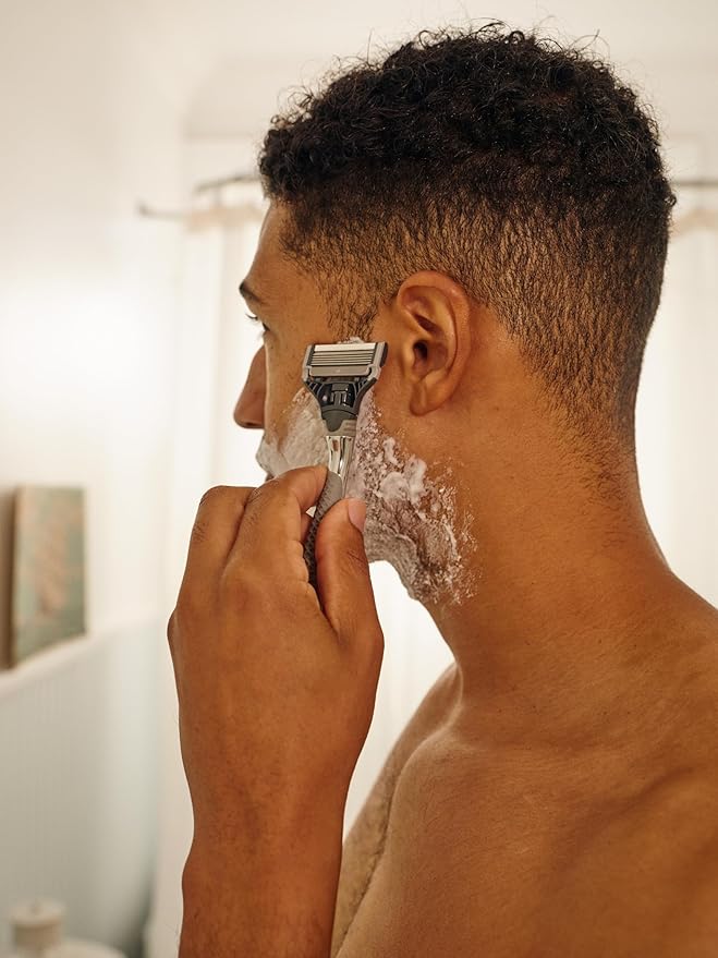 - 5-BLADE RAZORS: Five-blade refills distribute pressure when shaving, helping protect against nicks; Precision trimmer blade helps access hard-to-reach places like sideburns and under your nose