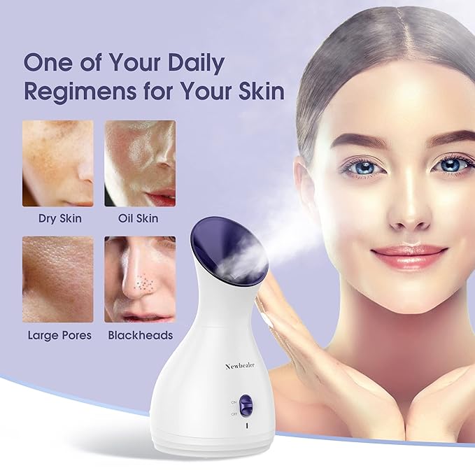 - PERFECT AMOUNT and TEMPERATURE -- The steamer takes about 80 seconds to heat up and then produces a great amount of steam (9g/min). Equipped with 170ml high-capacity tank, you can enjoy at least 20 minutes of steaming time for a home spa day! 113℉ hot mist helps you clear pores, purify and whiten skin, reduces acne and blackheads, and makes you look more beautiful