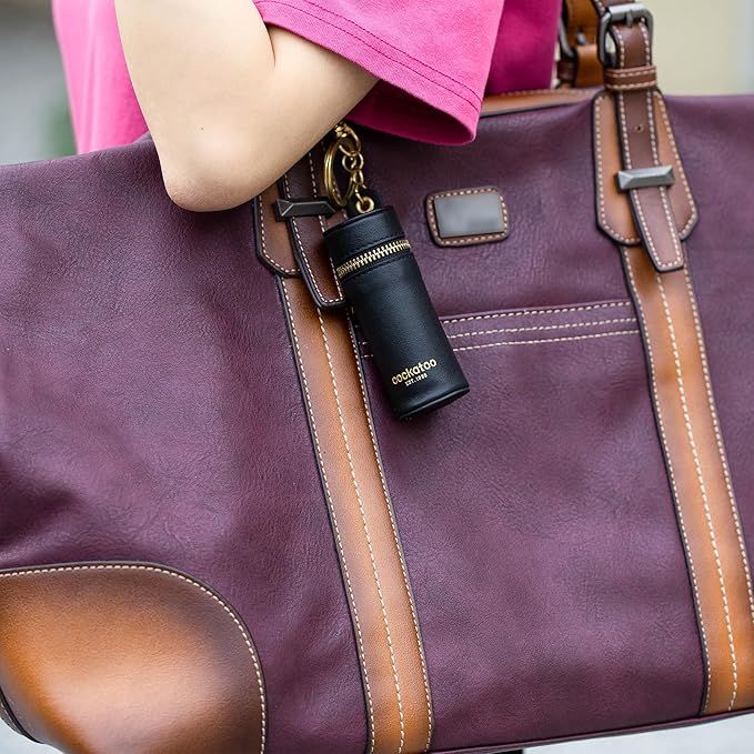 Cockatoo Nappa Leaeher Zipper Lipstick Case with Keyring Chapstick Holder Keychain (SUGARCANE)