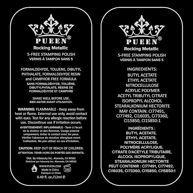 PUEEN Rocking Metallic Stamping Nail Polish Nail Art Color - Set of 12 Metallic Colors - 12ml each - BH001043