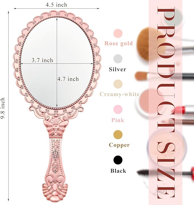 - Embossed Flower Design: these hand held decorative mirrors are designed with comfortable handles for long time holding, these classic decorative mirrors are embossed with retro flowers to show elegance, oval shape and retro elements will gain most people favors