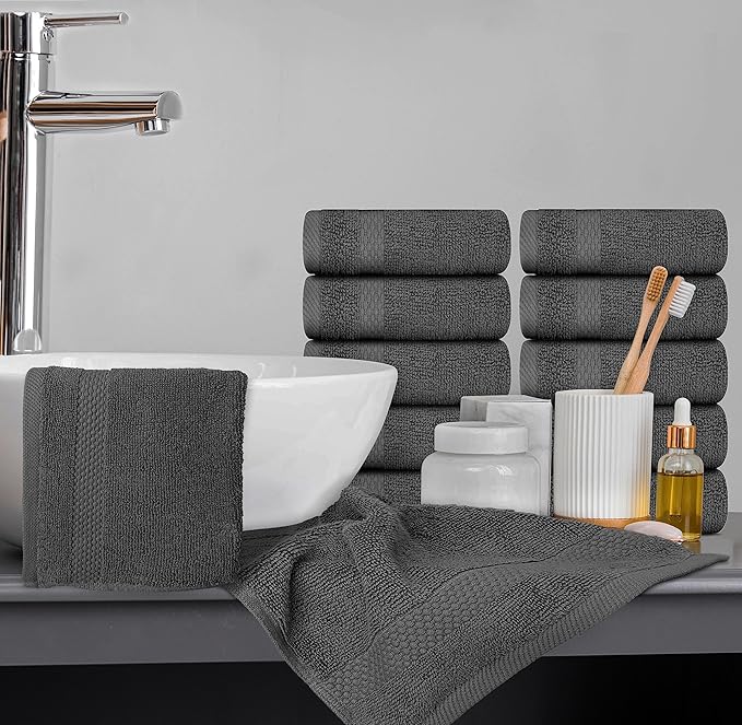 White Classic Luxury Washcloths for Bathroom-Hotel-Spa-Kitchen-Set - Circlet Egyptian Cotton - Highly Absorbent Hotel Quality Face Towels - Bulk Set of 12-13x13 Inch (Dark Gray)