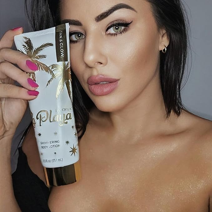 - SUN-KISSED GLOW YEAR-ROUND: Elevate your skin's allure with Onyx La Playa Tan & Glow. This fast-drying, lightweight shimmer body lotion creates a sun-kissed glow with delicate gold shimmer, providing a luminous radiance that enhances your beauty effortlessly, year-round.
