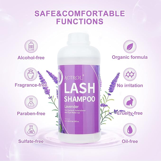 Eyelash Extension Cleanser Lavender 1L Natural Lash Extension Shampoo Professional Eyelid Foaming Cleanser Paraben & Sulfate Free Non-lrritating with Salon and Home Care