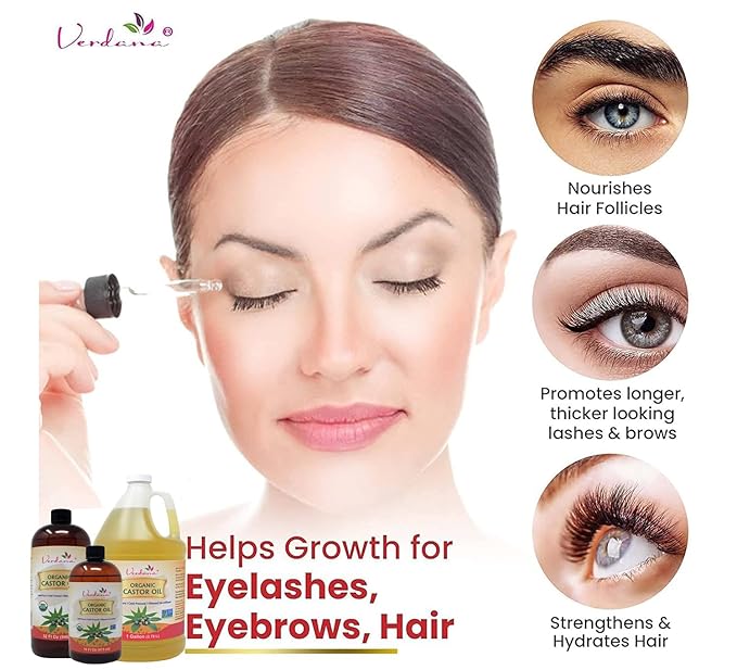 Verdana Organic Castor Oil – 1 Gallon Bulk Size – Cold Pressed, Unrefined, Hexane-Free – USDA Organic – Natural Moisturizer for Hair Growth, Eyelashes, Skin, Scalp & Castor Oil Packs