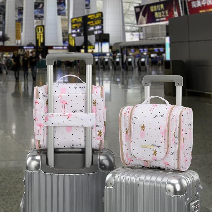 - 4. CONVENIENT TO USE: The stainless steel hook allows to hang the toiletry kit from towel rack, coat hook or wherever is available, top handle for easy carrying, Two-way zipper closure for quick access.