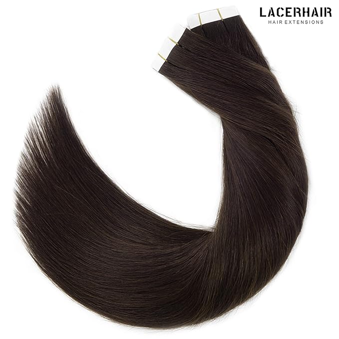 Lacer Tape in Extensions Human Hair Dark Brown Color Seamless PU Weft Straight Tape in Hair Extensions Real Human Hair for Black Women 20pcs/set 50g 22 Inch