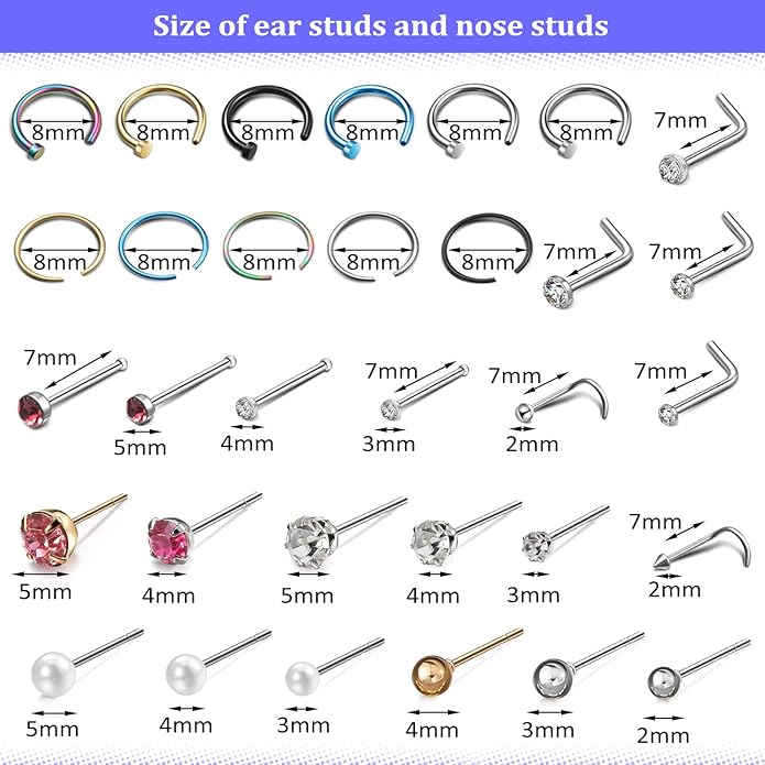- Nice set for use: you will receive 1 ear piercing kit, including black ear piercing gun, 36 pairs of stainless steel studs and 98 stud earrings and 22 nose studs, the ideal combination for your everyday decorating needs