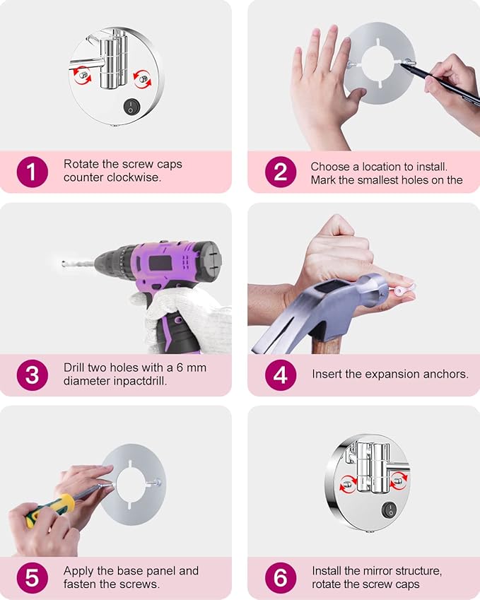 - 【EASY TO INSTALL WALL MIRROR】This is a magnified wall mounted mirror that needs to be installed. But please rest assured to buy, with all the accessories well equipped, only several steps to take. We also have every details clarified in the video. If you still have any questions, please contact us at any time