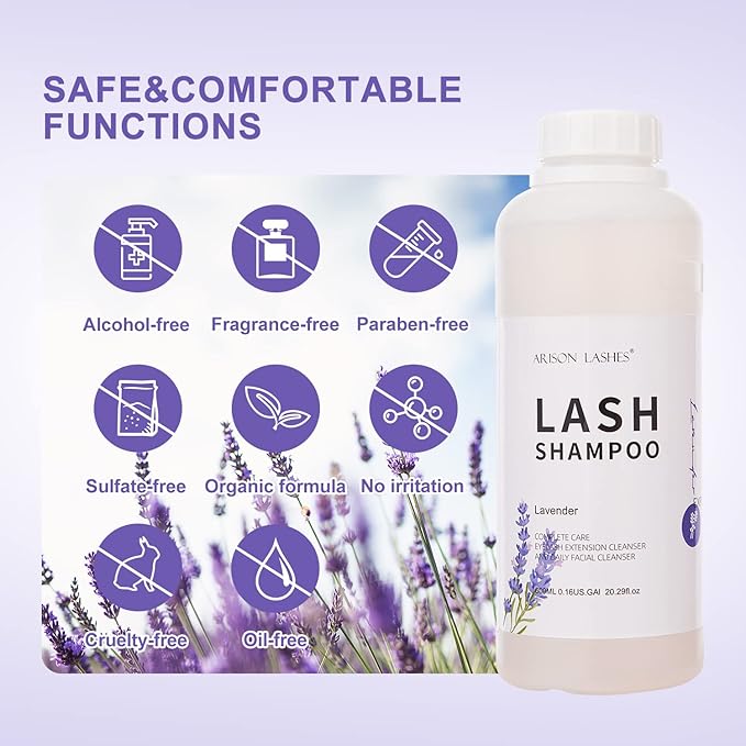 Arison Eyelash Eyelash Extension Shampoo 600ml / Eyelid Foaming Cleanser/Wash for Extensions and Natural Lashes/Paraben & Sulfate Free Safe Makeup & / Professional & Self Use (Lavender)