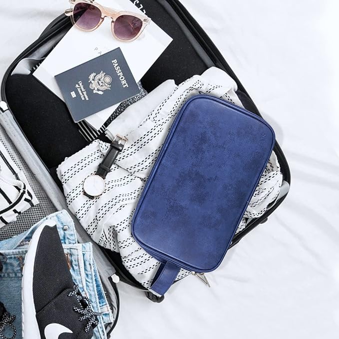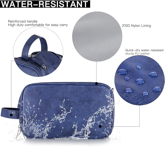 - WATER RESISTANCE STURDY MATERIAL: Exceptionally well built, the toiletry bag is made of PU leather, water-resistant nylon lining to keep moisture out of the bag. Premium zipper and reinforced seams are also implemented for long-lasting performance