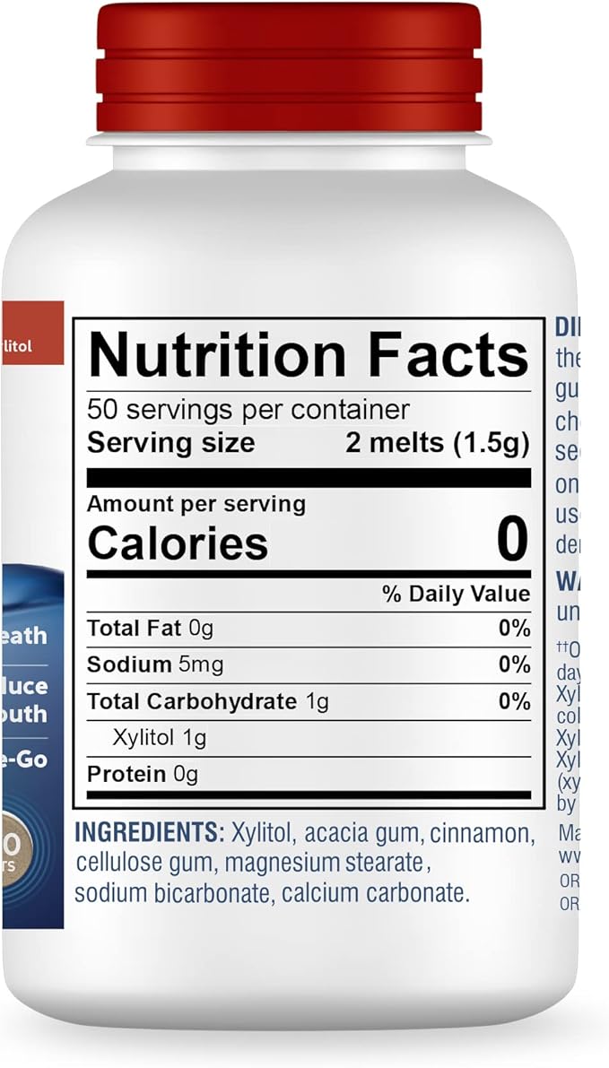 - GREAT TASTE: Enjoy this cinnamon flavor of XyliMelts, which release Xylitol to stimulate saliva, aiding bad breath and enhancing gum health with gum xylitol care