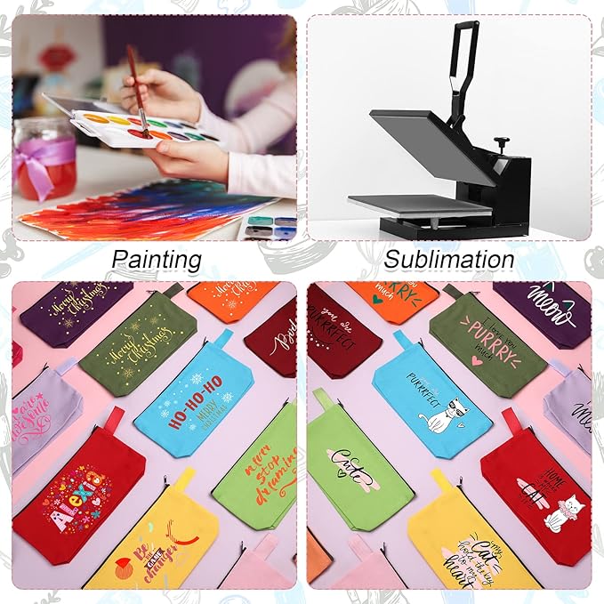 - Rich in Quantity: you will receive 60 pieces canvas cosmetic bags with blank prints that can be applied for DIY such as painting, embroidery, tie dye and so on, you can make your own patterns on them, sufficient quantity to meet your daily needs, and you can also share some with your friends; The colors are vibrant and pretty