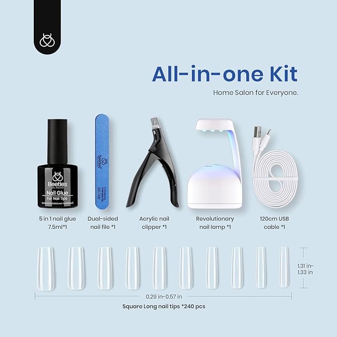 - Beetles 2024 Upgraded Gel Nail Kit: Our new Nail Tips and Gel Nail Kit includes an innovative Uv Led Nail Lamp, 7.5ml Nail Glue Gel, 240pcs Gel Nail Tips, Nail File and Nail Tips Clipper. You can easily extend your nails and enjoy the fun of Diy Manicure! The Newest, The Fastest, Most Professional, Nail enhancement in 2024 New Nails.