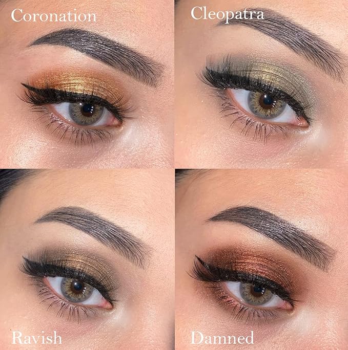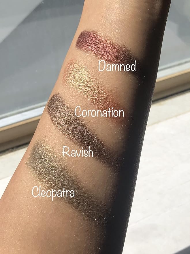 - The Complete Look — 4 complementary eyeshadow shades that can stand alone or be mixed & matched to perfect any look. Includes 1 Ravish (Warm Metallic Brown), 1 Damned (Deep Metallic Burgundy Red), 1 Coronation (Bright Metallic Copper), and 1 Cleopatra (Rich Neutral Metallic Taupe). 2 grams loose metallic eyeshadow powder of EACH color