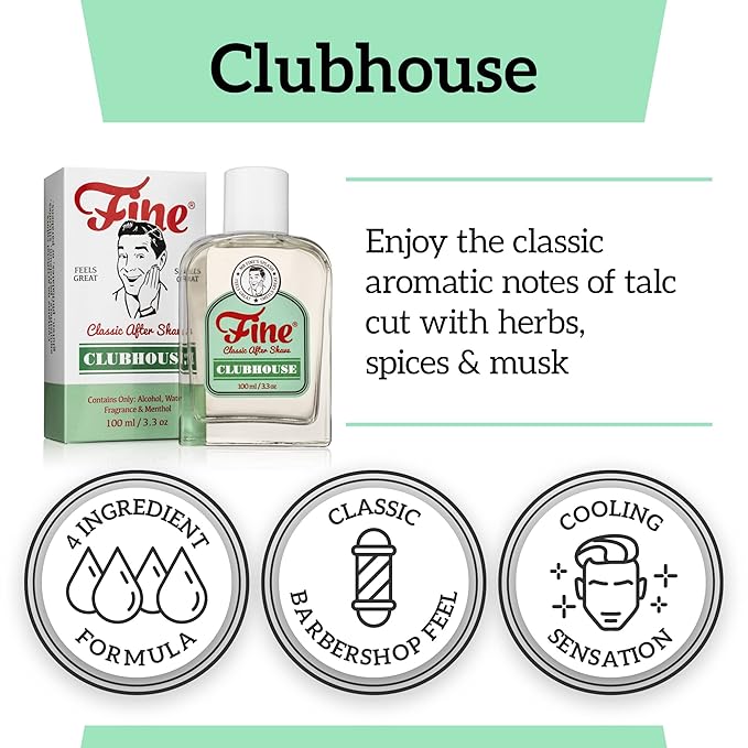 Fine Men's Aftershave - Clubhouse Classic Fragrance, Soothing & Toning Post Shave Balm, Calms Razor Burn, Classic Barbershop Feel, Alcohol-Based Formula, Gentle for All Skin Types, 100ml