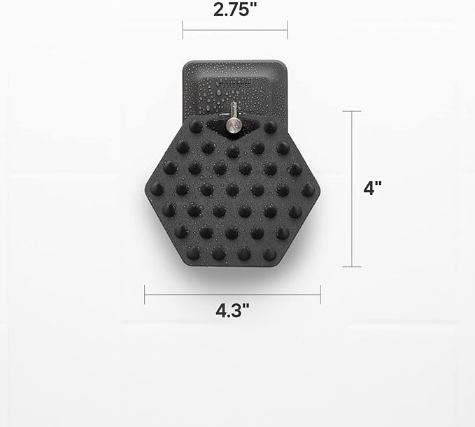 - PRODUCT DIMENSIONS - The Scalp Scrubber comes in at 4.3" x 4" x 2" / 10.9cm x 10.2cm x 5.1cm and the shower hook is conveniently sized at 2.75" x 2.75" / 7cm x 7cm making the set easy to store, install, and take with you when you travel