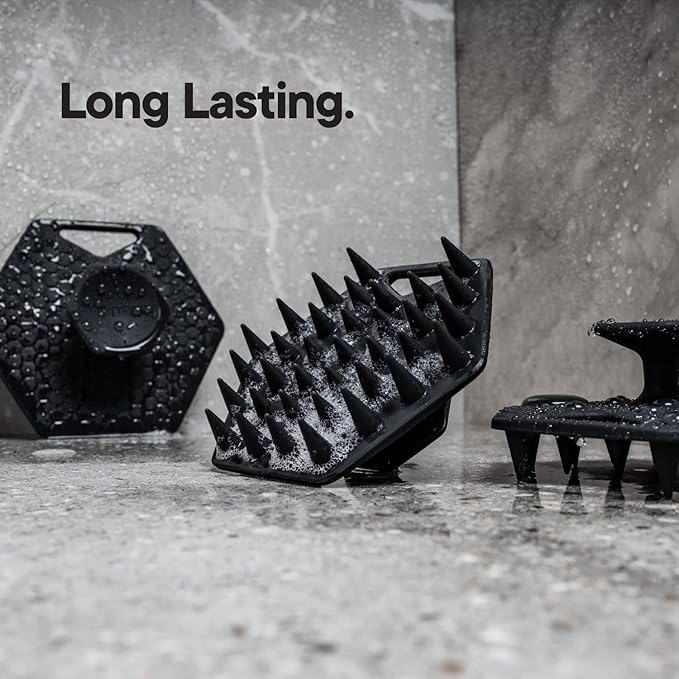 - GET YOUR SCRUB ON - To get going, add your favorite shampoo directly onto the bespoke silicone bristles, grab the ergonomic handling, and get scrubbing to hit deep into the roots. Once you're done, give it a rinse and hang it up on the included hook