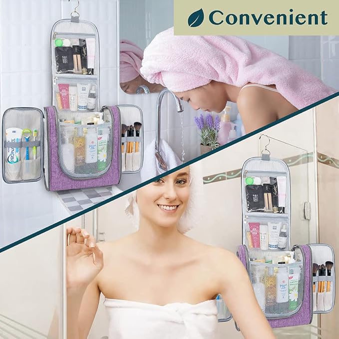 - EASY TO CLEAN: Simply wipe clean with damp cloth to maintain the toiletry bag travel bag. With its water resistant polyester fabric and waterproof compartment, this travel kit for women keeps your travel-size item, shampoo, conditioner, lotion, face wash, medicine, toothpaste, toothbrushes, hair brush and daily makeups protected and organized for every trip, cruise, flight! A must have for every travel packing list!