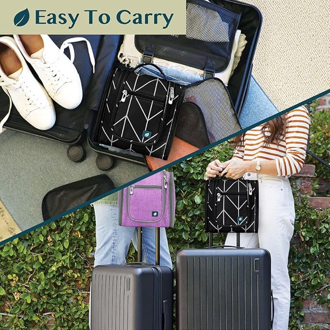 - COSMETICS TRAVEL BAG ORGANIZER: This toiletry bag for women has a hanging hook and multiple pockets that help you stay organizer during business trip, vacation travel. The hanging hook makes it easy to hang the toiletry bag to bars in the hotel shower bathroom. Unzip your toiletry bag to reveal compartments to organize your shampoo, skincare face hygiene products. This toiletry travel bag is an essential accessory for cruise in Europe, plane, Hawaii Trip, and honeymoon.