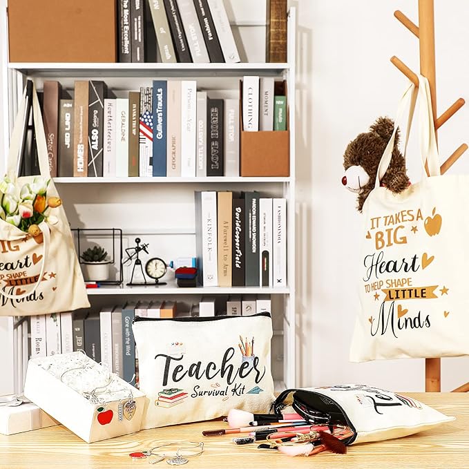 - Teacher Gift Set: you will get 9 pieces of teachers appreciation gifts in 3 kinds, including teacher makeup bags, canvas teacher tote bag and teacher bracelets, 3 pieces for each kind, complete and ideal to be sent to your teachers