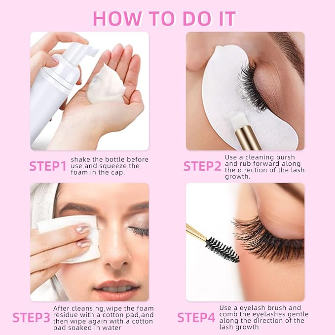 - ❤ Eyelash cleaner-Our Eyelash Extension Shampoo cleans dirt, grease and cosmetic residue from your eyelashes. Keep your eyelids healthy and clean