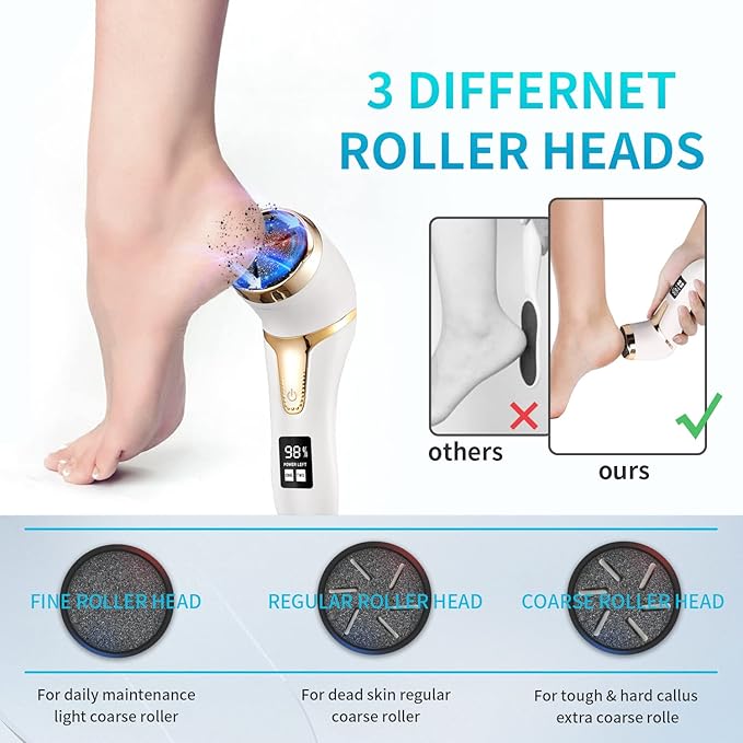 Electric Foot Callus Remover with Vacuum,AMPK Professional Pedicure Tools Kit Foot File Scraper,Waterproof Callus Remover Kit with 3Heads,2Speed,Battery Display for Callused Dead Hard Cracked Dry Skin