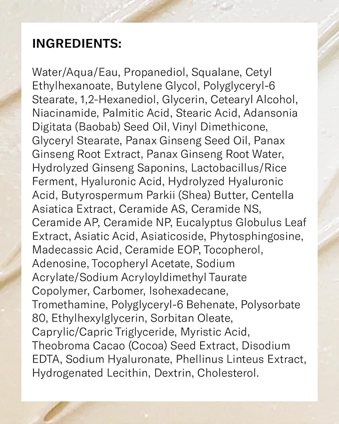 - MOISTURE-RICH FORMULA: The Quad Ginseng Complex delivers a powerful blend of antioxidants that leave skin smooth, soft and plump with moisture. Ingredients baobab, squalane and hyaluronic acid absorb quickly, hydrating and quenching the skin