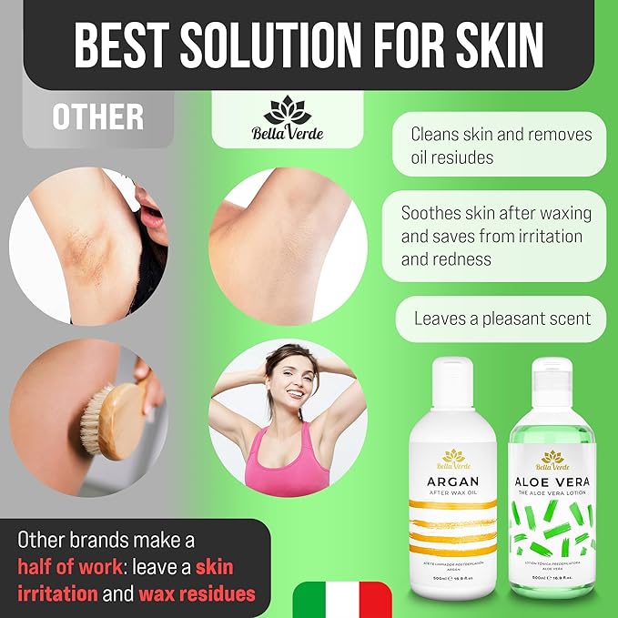 - Silky Smooth Skin – Keep your skin smooth, healthy, and hydrated before and after waxing! Prepare and protect your skin to avoid swelling and stinging with Aloe and Argan Power.