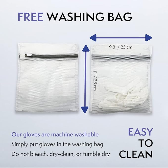 - 【WASHABLE & REUSEABLE】To reuse the gloves, put gloves inside the wash bag when washing in machine, make sure to use light detergent then air dry, the material should shrink to normal size after being stretched and washed.