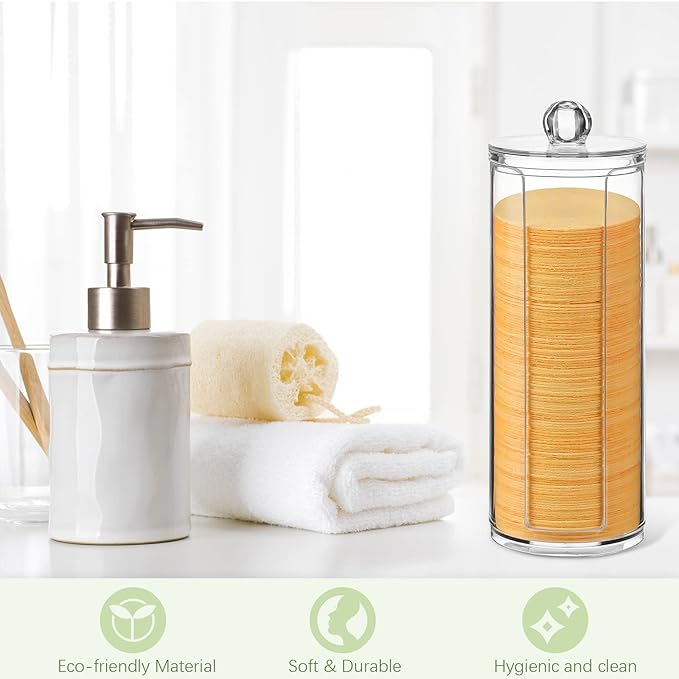 - Size Details: the diameter of the face exfoliator sponge is about 63 mm/ 2.5 inches, and the thickness is about 1 mm/ 0.04 inch under compression, the diameter is about 68 mm/ 2.68 inches, the thickness will expand to about 8 mm/ 0.31 inches after absorbing water; The diameter of the transparent acrylic container is about 7 cm/ 2.76 inches and the height is about 20 cm/ 7.87 inches, enough for you to store your sponges