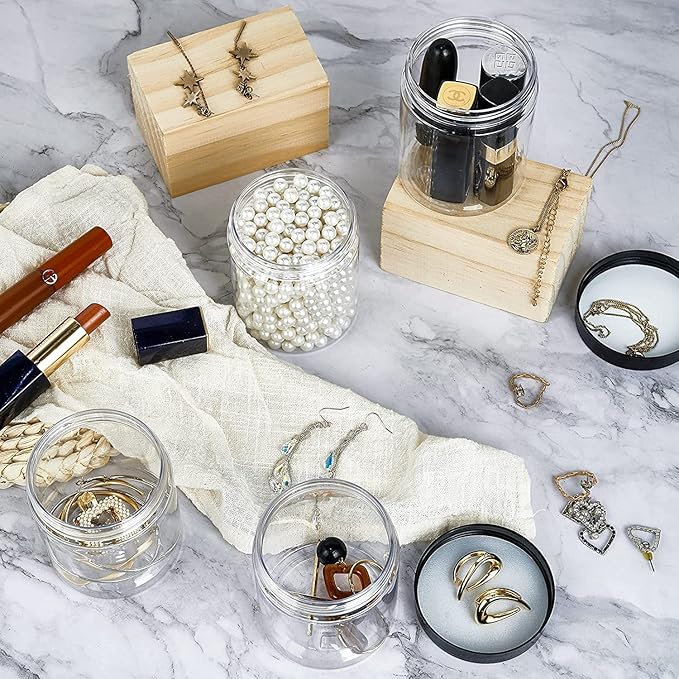 - ★【LEAK PROOF AND AIRTIGHT】: Each Jar comes with a screw-on lids with foam liners which creates an airtight seal when the lid is securely screwed onto the container. You do not need to worry about leakage, especially when you carry them in your bags. Plastic container jars with white lid and transparent clear bottom, lovely in appearance. See-through plastic jars display your contents.