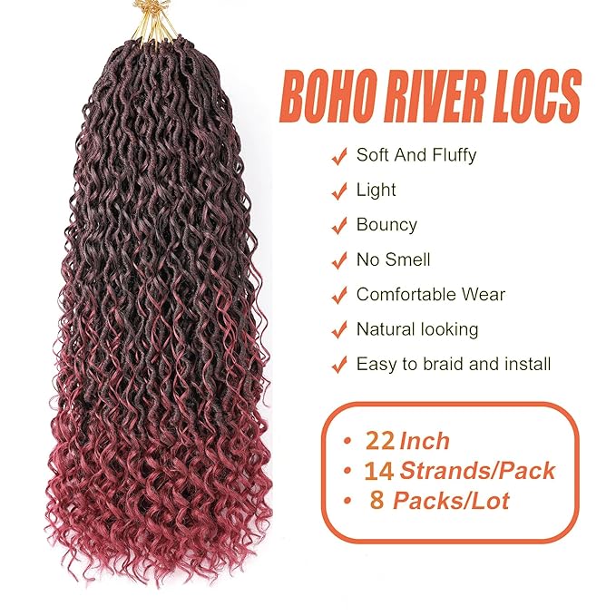 - 2.Features: New Fashion Nice,Trendy and Edgy Look, Natural and Charming. Compared with goddess locs, the river locs Is More Lovely And Full-Looking. One Strand With 2-3 Curly Hair.