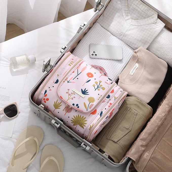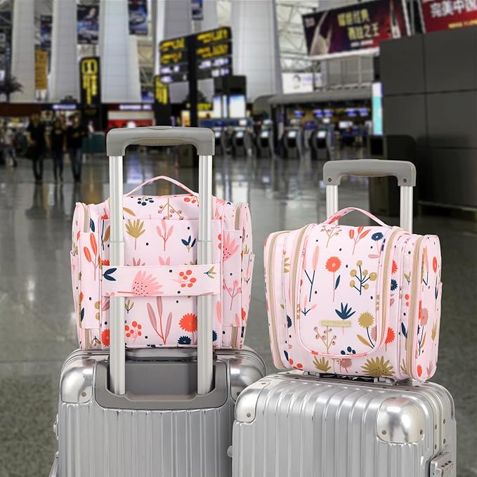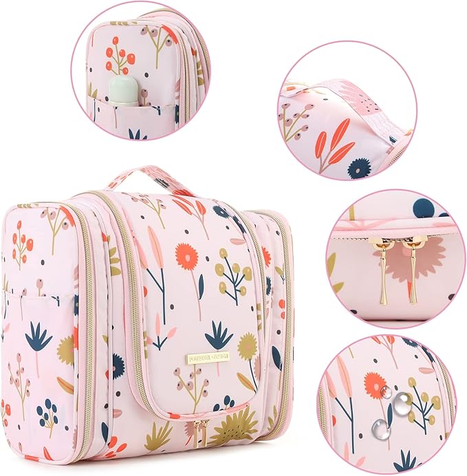 Lychii Hanging Toiletry Bag for Women, Large Water-Resistant Cosmetic Makeup Bag Travel Organizer - Floral