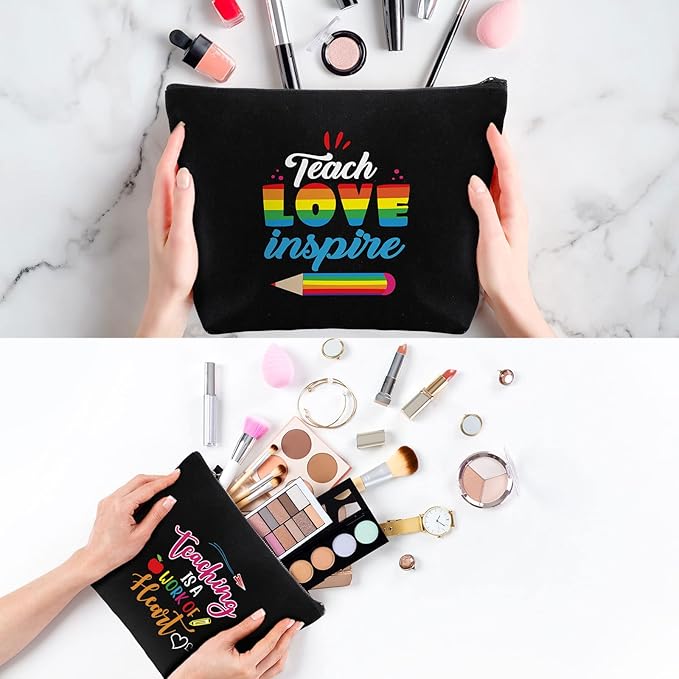 - Reliable and Reusable: the teacher tote bag is about 42 x 38 cm/ 16.5 x 14.9 inches, and made of quality canvas, the makeup bags are bout 24 x 20 cm/ 9.4 x 7.9 inches, and made of the polyester mixed cotton cloth; The proper sizes can meet your daily various demands; The quality materials of the teacher gift bag sturdy and firm to resist break and deform, washable and fadeless, portable and foldable, reliable and reusable