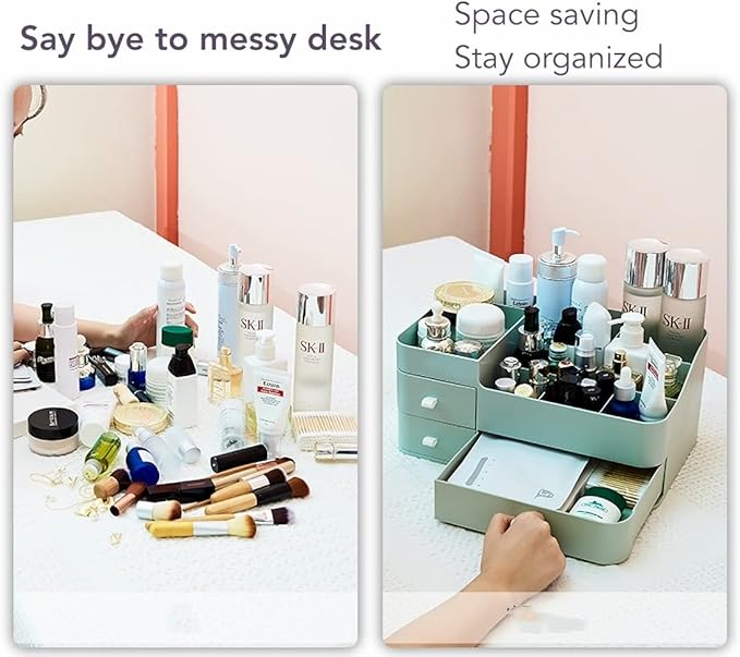 Makeup Organizer for Vanity, Large Countertop Organizer with Drawers, Cosmetics Storage for Skin Care, Brushes, Eyeshadow, Lotions, Lipstick,Nail Polish.Great for Dresser, Bathroom, Bedroom-Green