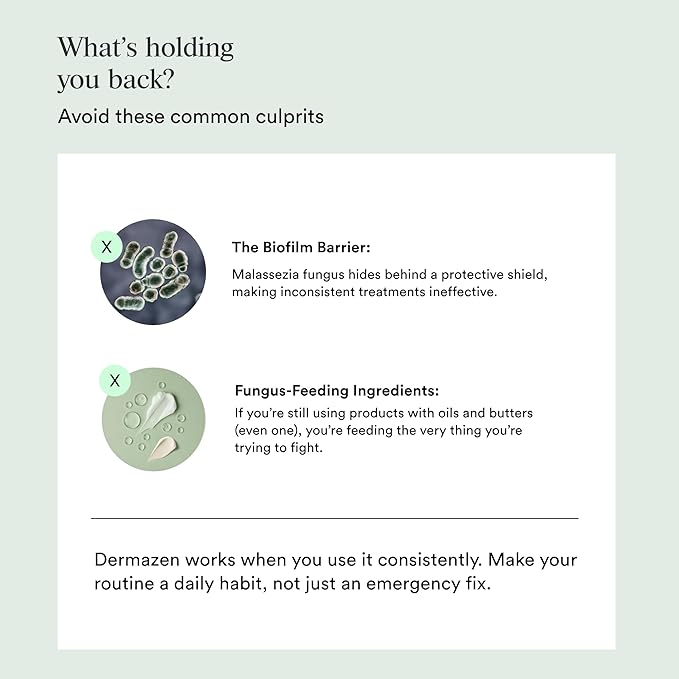 - There's a reason your manuka honey gel, ointment, and specialized shampoo isn't working - they aren't disrupting the biofilm (so they can't reach the skin aggrivator) and they use oils that feed the problem. Put an end to your seborrheic nightmare and gain peaceful skin and peace of mind with Dermazen.
