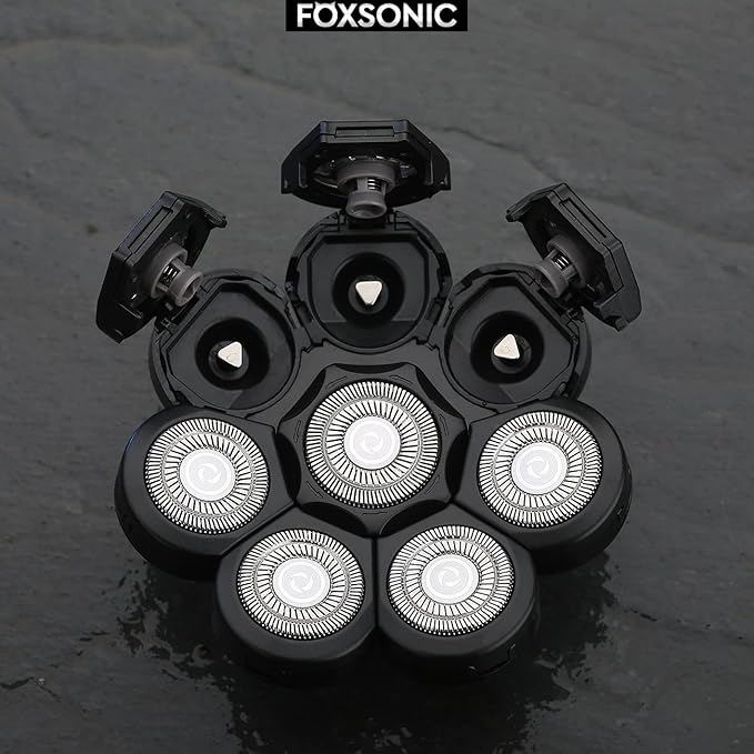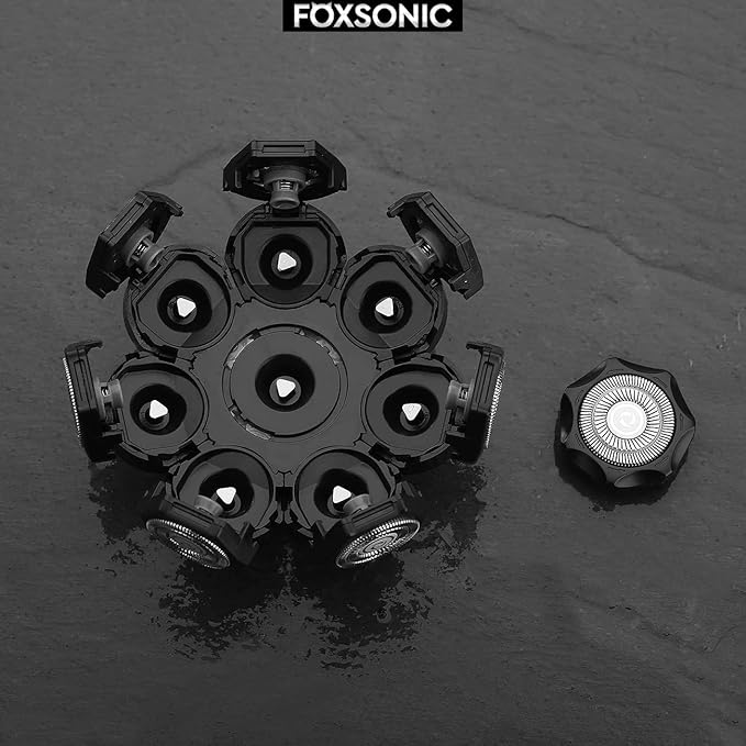 - ★ Foxsonic 8 heads 8 blades men's electric shaver features special electroplate surfaces for anti-abrasion, double-ring hypoallergenic stainless blades. Its 9D flex floating heads rotate to follow the contours of your face, head, neck and jaw, offering closer and cleaner trimming without skin irritation.