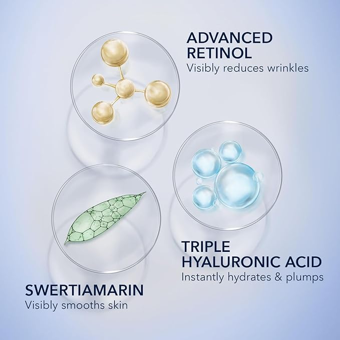 - WRINKLE FILLER TREATMENT: Developed with Dermatologists & Plastic Surgeons, this serum contains 3 forms of Hyaluronic Acid to instantly plump skin & fill in the look of wrinkles. Over time, pure RoC Retinol & Swertiamarin provide lasting improvements to deliver visibly smoother-looking skin. Refill available.