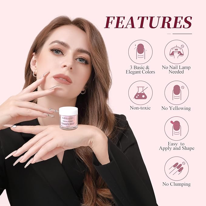 - Acrylic Powder and Liquid Set: Features pink, clear, and white acrylic powders for versatile use in all seasons. Easy shaping with no clumping or yellowing. Can also be used as dipping powder for multiple nail art effects. Perfect gift for DIY nail art enthusiasts