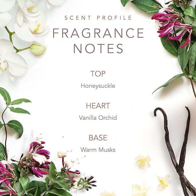 - Fragrance Notes: The top note of this scent is honeysuckle; the heart note is vanilla orchid; the base note is warm musks; the beautiful scent and bottle make this perfume the perfect gift