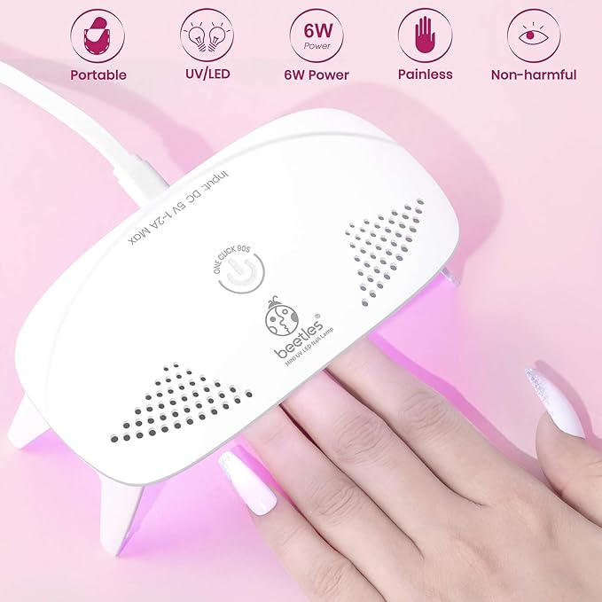 - Easy to Use: Beetles gel nail lamp has a one-button design with a built-in timer. Touch the button once for 90 seconds. This setup is easy to use for even the nail art beginner.