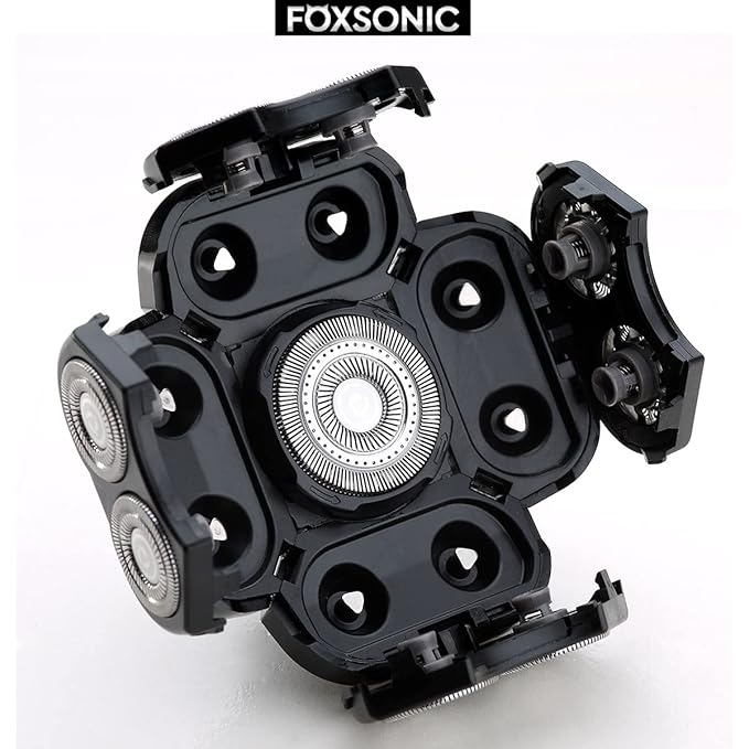 - ★ Foxsonic 9 heads 9 blades men's electric shaver features special electroplate surfaces for anti-abrasion, double-ring hypoallergenic stainless blades. Its 9D flex floating heads rotate to follow the contours of your face, head, neck and jaw, offering closer and cleaner trimming without skin irritation.