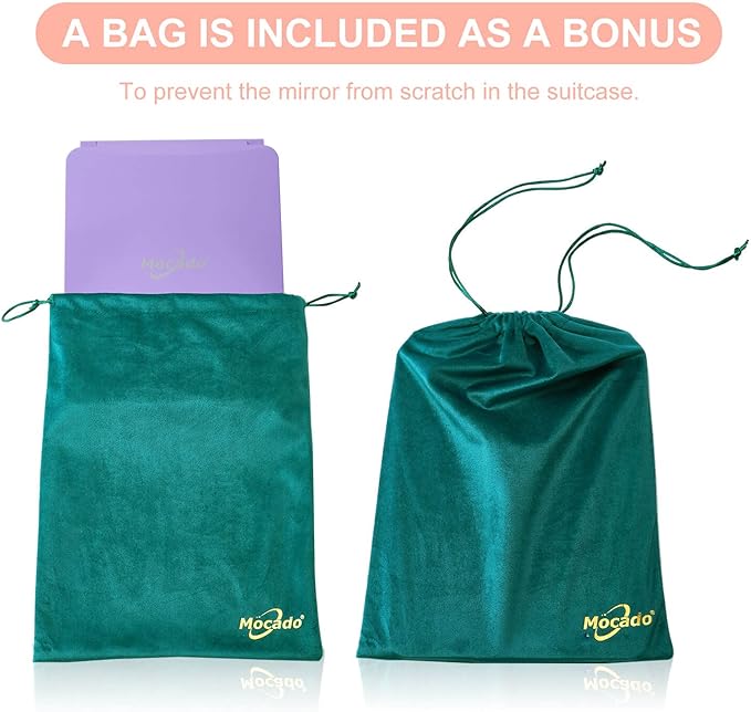 - 【Free Rotation & Portable Size 】It can stand on any flat surface by adjusting the handle. It can be rotated in multiple angles and you can adjust the makeup mirror to any desired position. The foldability design take up little space.